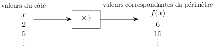 Le procédé associant le côté d'un triangle équilatéral à son périmètre définit une fonction linéaire de coefficient 3.