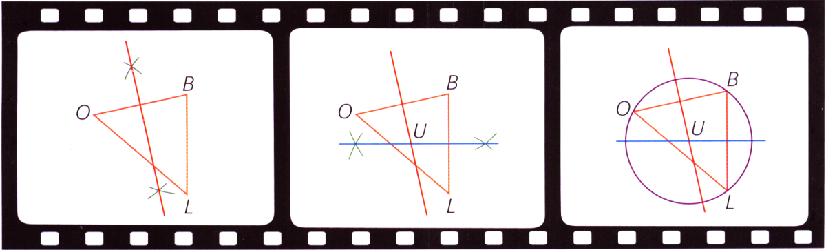 Les médiatrices des trois côtés d'un triangle sont concourantes, elles se coupent en un même point qui est le centre du cercle circonscrit.