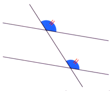 Sur la figure ci-contre, les deux angles alternes-internes sont de la même mesure. Les deux droites coupées par la sécante sont donc parallèles.