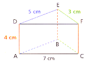 périmètre d'une base, en \(cm\) : \(\mathcal{P}_{base}=5+3+7=15\)