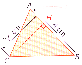 \(\mathcal{A}=\dfrac{c\times h}{2}=\dfrac{4~cm\times2,4~cm}{2}=4,8~cm^2\)