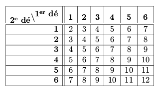 Somme de deux dés cubiques :