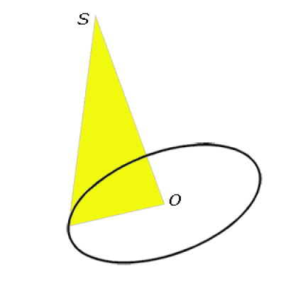 Un cône de révolution est un solide obtenu en faisant tourner un triangle rectangle autour de l'un des côtés de son angle droit.