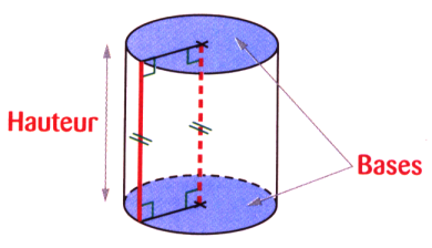 La hauteur d'un cylindre de révolution est la longueur du segment qui joint les centres des bases.