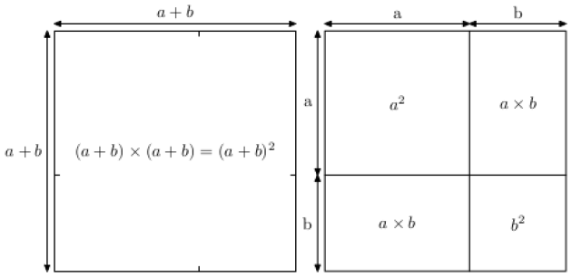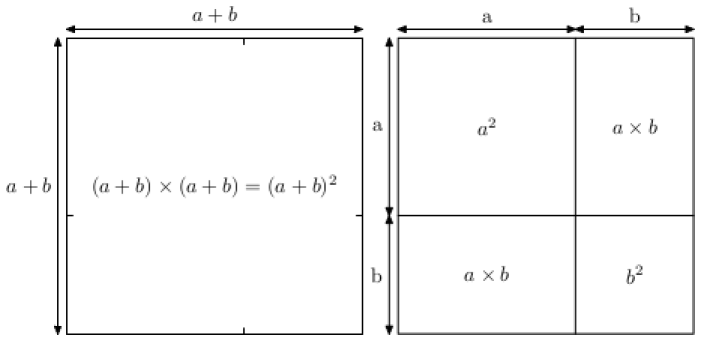Le carré de la somme de deux nombres est égal à la somme des carrés des deux termes augmentée du double produit.