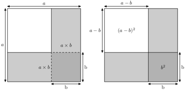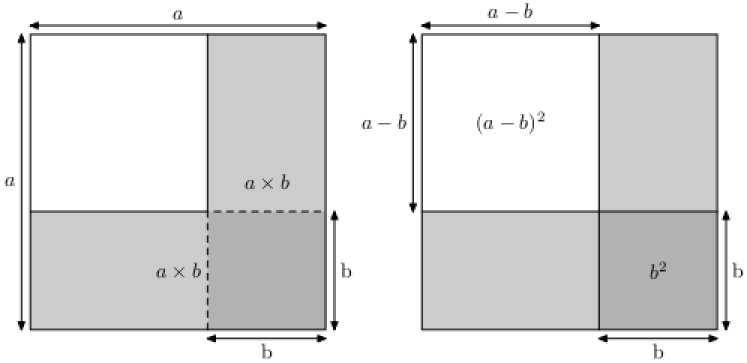 Le carré de la différence de deux nombres est égal à la somme des carrés des deux termes diminuée du double produit.