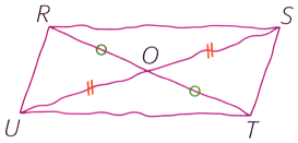 Le point \(O\) est le milieu des diagonales \([RT]\) et \([SU]\) du quadrilatère \(RSTU\).