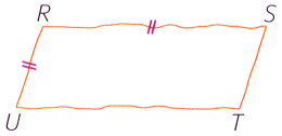 Le parallélogramme \(RSTU\) a deux côtés consécutifs \([RS]\) et \([RU]\) de la même longueur.